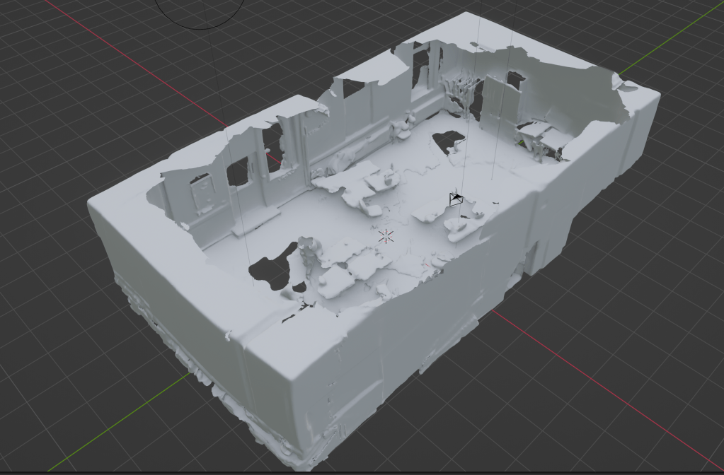 This made it very easy to get scale and position of everything in the room. I really recommend this for fast room set-up. Here it is with the newly modelled geometry overlaid on top of the original scanned mesh.